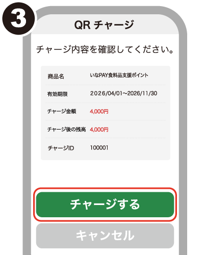 - いなPAY食料品支援ポイント(電子商品券)のチャージ後、食料品支援チケット(紙商品券)への変更はできません。